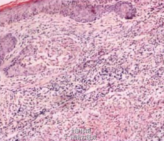 双侧下颌部及颈部可触及数个肿大淋巴结。双侧面部颌角区、颈部见绿豆至拇指大小的结节、脓肿、溃疡、瘘管及瘢痕。脓肿质地中等。溃疡呈狭长形,基底不平呈苍白色、微坚实,其上有结痂,按压有黄红色浆液溢出。皮疹边缘不清,呈条索状分布。结核菌素纯蛋白衍化物试验强阳性。组织切片查抗酸杆菌阳性。