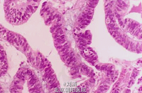 患者,女,55岁,G3P2A1,因”绝经3年,不规则阴道流血1月”入院。患者三年前已绝经,1月前无明显诱因患者出现不规则阴道流血,淋漓不尽至今,曾在当地医院行诊刮术,病理检查报告为:子宫内膜中重度非典型增生伴区域癌变。我院会诊病理切片结果:绝经后子宫内膜增生伴高分化子宫内膜样腺癌。