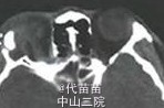 专科检查:视力右眼1.0左眼1.0,眼压右眼13mmHg左眼14mmHg,眼球突出右眼19mm,左眼17mm.右眼眼眶缘外上方可见大小约3.0*2.0cm,质硬,表面光滑,边界清,不可推动,皮肤无红肿,无溃烂。双眼无充血,角膜清,前房清,晶体透明,视网膜平伏。 外院CT示:右眼颞上方及球后占位性病变。