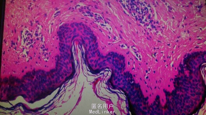 患者青年女性,皮疹表现为躯干四肢反复红斑,24小时消退完全,考虑慢性荀麻疹诊断成立,因患者近半年来反复发作,出现低热,乏力,多处淋巴结肿大及游走性关节痛,可能为淋巴瘤的临床表现,建议排除皮肤T细胞淋巴瘤,随活检诊断。皮肤病理确诊荨麻疹诊断。
