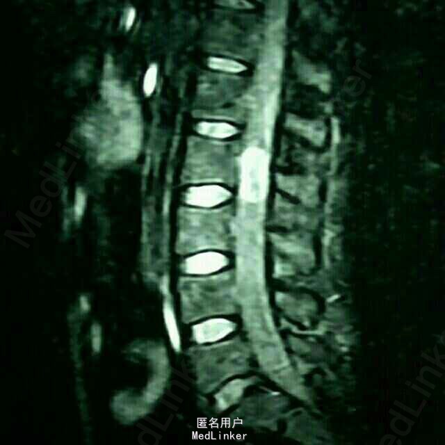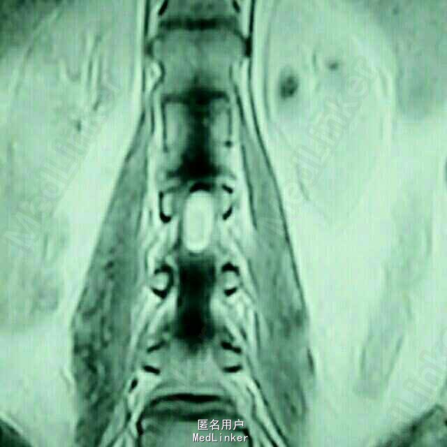 患者四肢肌力及肌张力可,病理反射未引出;鞍区及左侧大腿疼痛,无感觉减退。 腰椎MRI:腰2椎管内占位