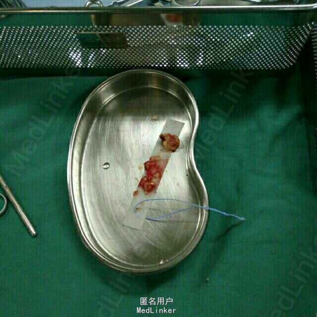 腰2神经鞘瘤 患者在全麻下行腰2椎管内占位病变切除术,术中见病变位于腰2神经马尾,呈囊实性,分界清,包裹神经纤维