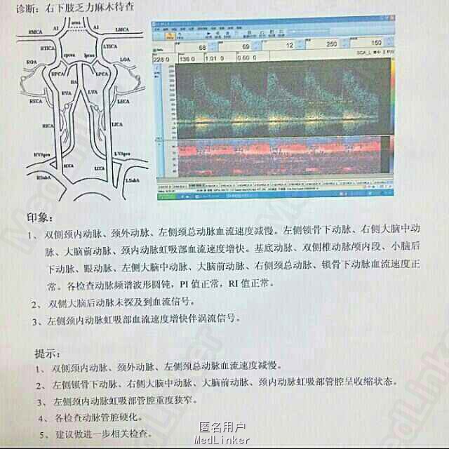 主诉:右下肢乏力半年,加重伴麻木2天 现病史:半年前无明显诱因出现右下肢乏力,无其他不适,吸氧后好转。1天前加重,伴右下肢麻木、酸疼,急诊行扩管输液治疗,效果不明显。起病来精神睡眠差,余正常。 既往史:高血压,最高200mmHg,硝苯地平控释片30mg qd,控制可;慢性胃炎。