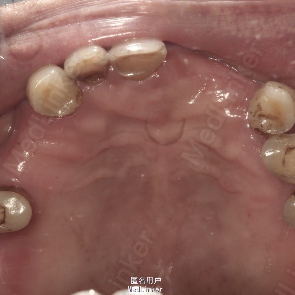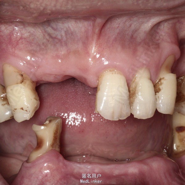 上颌多颗前后牙缺失,下颌仅余留37和44。