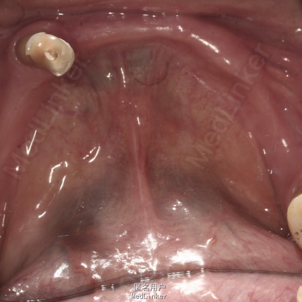 术后初期下颌固位良好,但是半年后磁性附着体部位出现支点,义齿翘动。经过重衬后改善,建议该类修复定期复诊,定期重衬。
