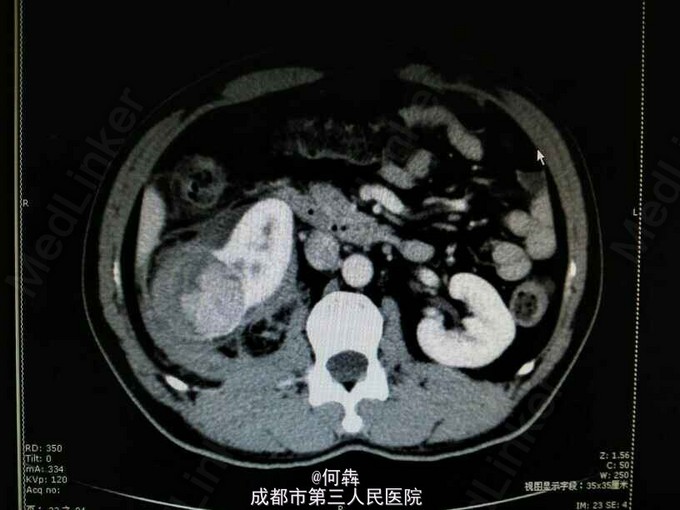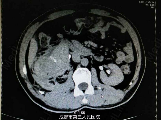 肾上皮样血管平滑肌脂肪瘤(EAML)是肾血管平滑肌脂肪瘤的一种少见亚型。2004版WTO肿瘤分类定义为一种具有恶性潜能的间叶性肿瘤。诊断时则往往与肾细胞癌相混淆。近年较多文献报道,部分EAML易局部复发、侵袭性生长、静脉侵犯、淋巴结或远处转移(以肝和肺转移为主),其预后不佳。