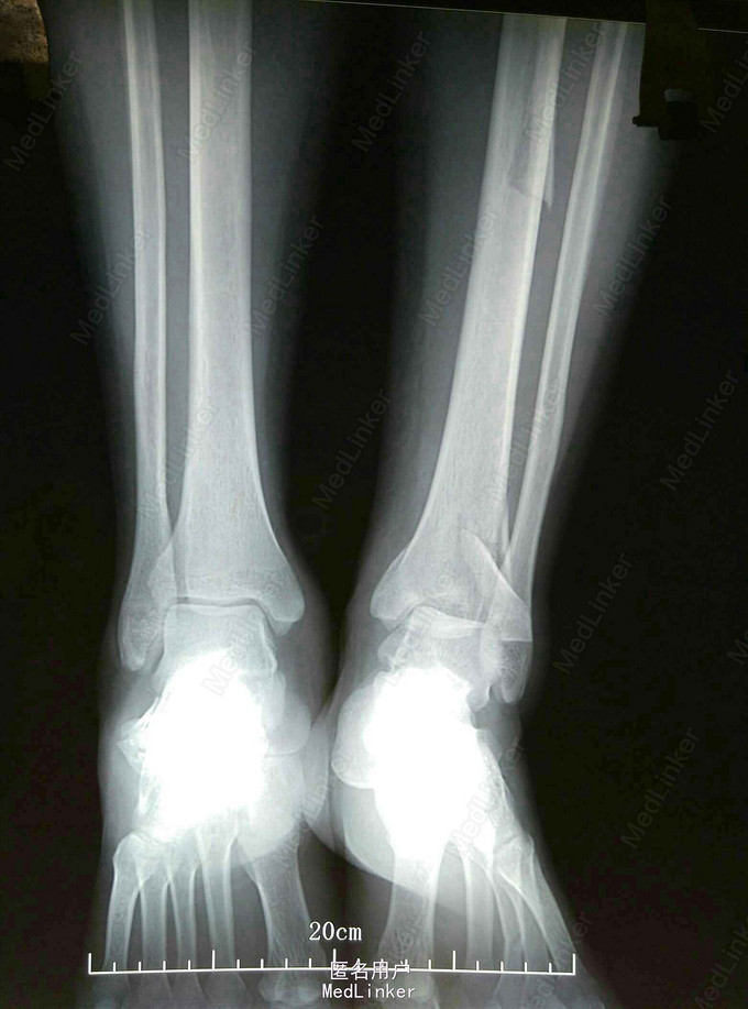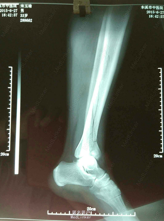 患者女33岁左踝刺痛活动受限5小时 ,患者5小时前擦玻璃时不慎从10米高处坠落伤后来诊。既往:健康。否认肝炎结核等传染病史。