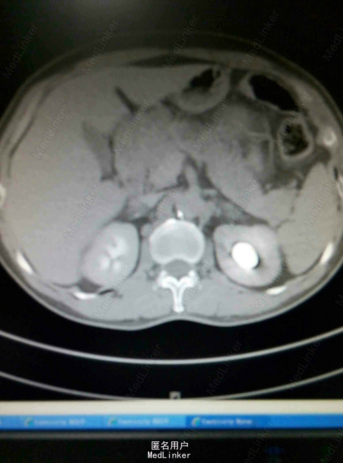 男,60岁。左腰不适二周。二周前自觉左腰部不适,无肉眼血尿及腰背绞痛。
