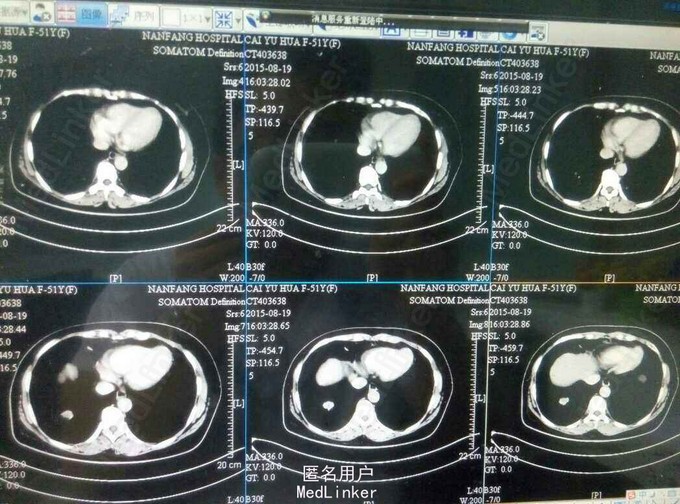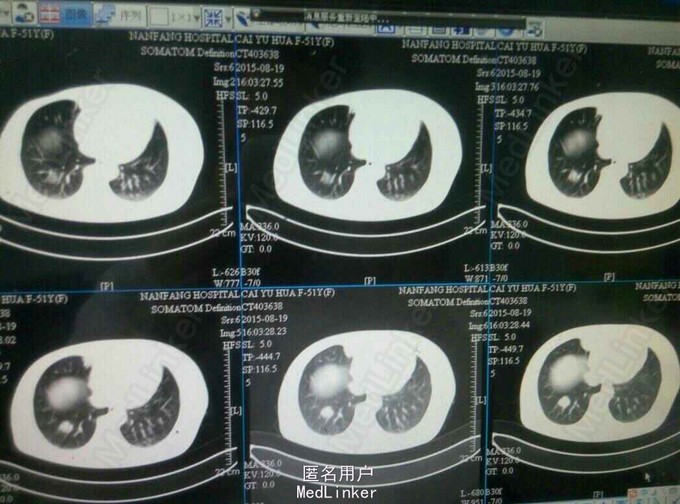 2015-08-19:我院胸片和CT示双肺多发结界影考虑转移瘤