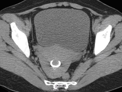 【影像表现】 后位子宫,大小形态正常,包膜光整,实质回声均匀,宫内见节育环回声,位置正常。CT扫描示子宫大小及形态未见明显异常,肌层密度均匀,宫腔内可见一节育环密度影,位置未见异常。