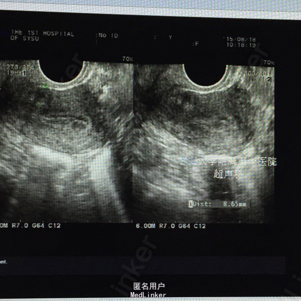妇查:无异常。 辅查:2015-05-28外院行输卵管三维超声造影检查,结果提示“左侧输卵管通而不畅,右侧输卵管近段阻塞”。 2015-8月我院妇科B超示: 子宫内膜厚径9mm, 肌层回声欠均,子宫前壁低回声区9mm×7mm,考虑小型子宫肌瘤。