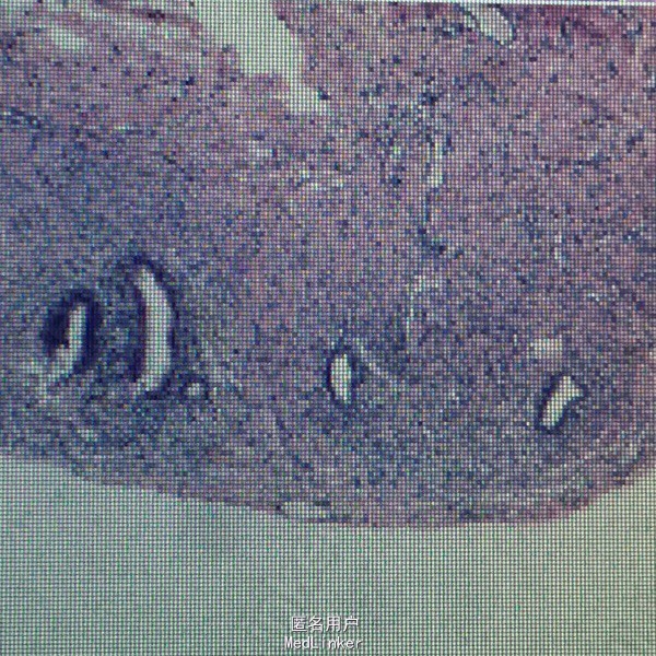诊断:1.原发不孕;2.右侧输卵管近段阻塞;3.左侧输卵管通而不畅 治疗:宫腔镜检查术+腹腔镜子宫肌瘤剔除术+腹腔镜子宫内膜异位病灶电灼术+右卵巢活检术+双侧输卵管通液术。镜下子宫前壁见小肌瘤,盆底腹膜见疤痕样子宫内膜异位病灶,右卵巢见小结节,双侧附件外观正常,注射美兰见双侧输卵管通畅,剔除小肌瘤及右卵巢结节,切除疤痕样子宫内膜异位病灶,取出组织活检。冲洗盆腔,查无出血,术毕关腹。病理示:1.子宫平滑肌瘤2.卵巢结节为苗勒氏管残留3.子宫内膜异位病灶。