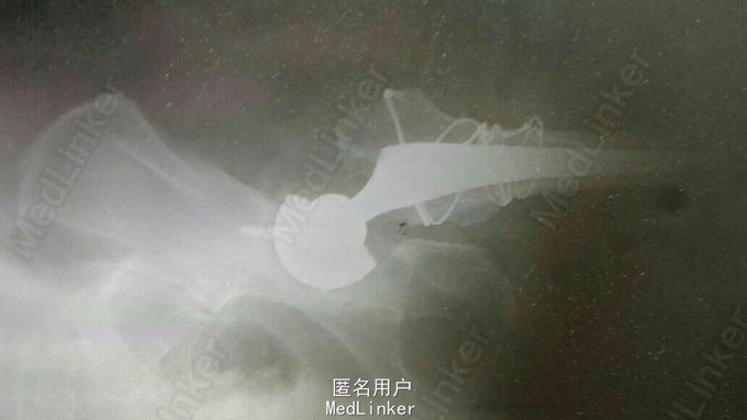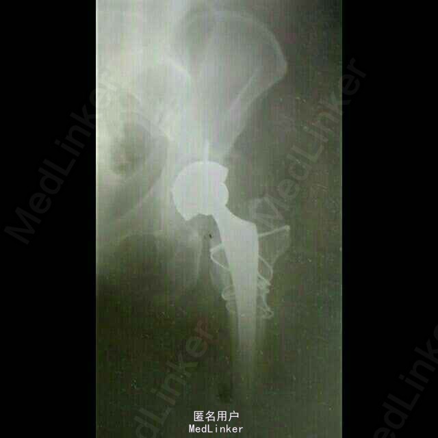 患者×××,男。60岁,“左侧人工全髋置换术后骨折”。于20天前因股骨头坏死行左侧人工股骨头置换手术治疗。术后20天翻身时出现脱位,在当地医院腰麻下行手法复位时出现骨折。故来院诊治。