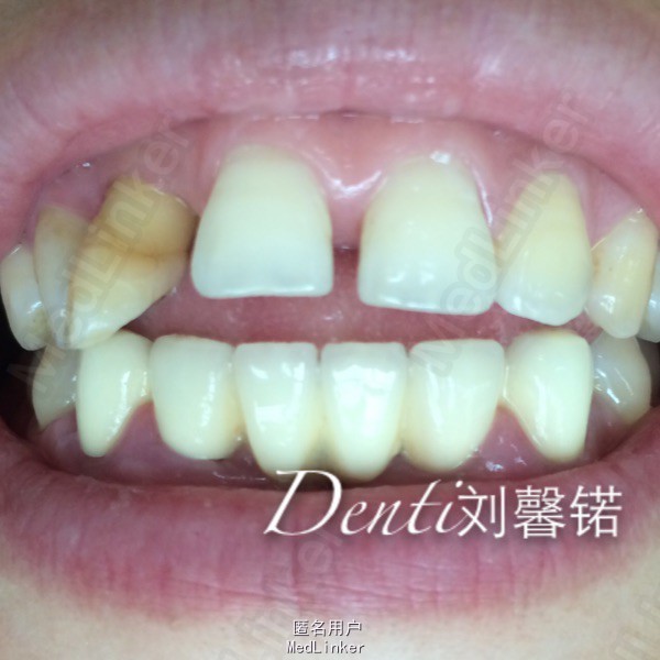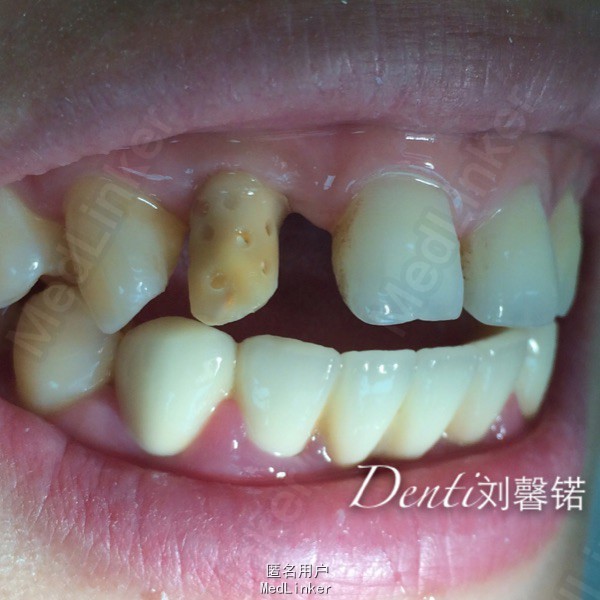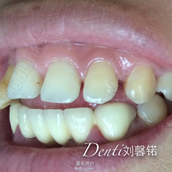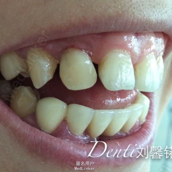 主诉:牙周病牙齿移位影响美观半年余 现病史:患者牙周病多年,三年来一直积极牙周系统治疗,右上前牙逐渐移位,目前影响美观及使用,就诊我科。
