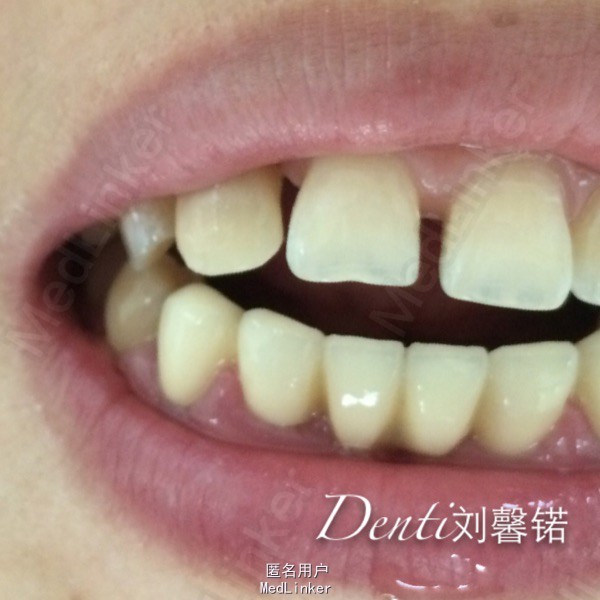 讨论:跟患者交谈,建议转入修复科,桥体修复,关闭前牙间隙,并修复右上2移位牙,彻底改善美观问题,但患者经济条件有限,并且不愿意磨损“好牙”,仅要求将右上移位2处置美观一些,因此给予树脂修复处理,充填手法笨拙,效果不理想,希望以后多加练习,提升技能水平