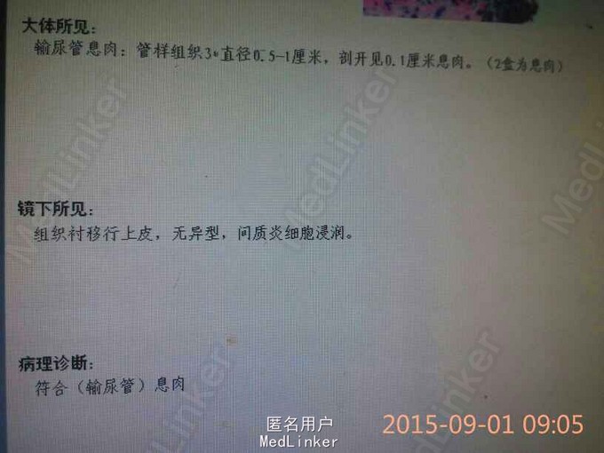 术后9天,待病理中。 病理回报输尿管息肉