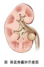 病理:(左肾)送检直径1.5cm碎组织一堆,囊壁样。镜下:送检囊壁样组织,囊壁披覆单层上皮,囊壁内肾小管萎缩,肾小球玻璃样变,病变符合肾囊肿。 肾盂旁囊肿又名为肾盂周围囊肿;起源于肾窦外、侵入肾窦的囊肿命名为肾盂旁囊肿。肾盂旁囊肿多由先天性因素造成。 肾盂旁囊肿因是良性病变,囊肿小且无症状,可定期随访,当囊肿直径>5cm,或出现压迫症状及并发症时,应积极采取手术治疗。手术方法有开放性囊肿去顶减压术,B超引导下穿刺抽吸囊内液注射硬化剂以及腹腔镜囊肿切除术等。 随着腹腔镜技术的不断普及和发展,腹腔镜囊肿去顶术必将成为肾盂旁囊肿治疗的首选方法。