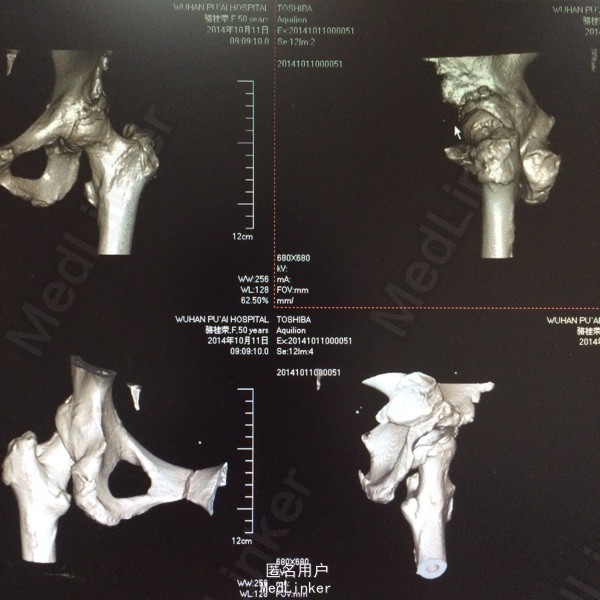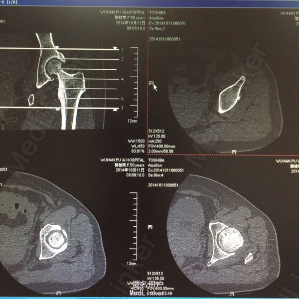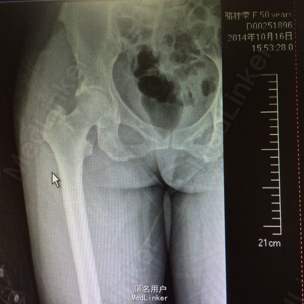 患者,女,50岁。因“双髋关节疼痛活动受限一年余”入院。 患者一年余前无明显诱因感双髋关节疼痛,活动后症状加重,休息后稍有缓解,不伴发热、咳嗽,否认明确外伤史。于今年8月在我院门诊拍片(M00085020)示:双侧股骨缺血性坏死。今为求进一步治疗来我院求诊,门诊查体阅片后以“双侧股骨头缺血性坏死”收住我科。 自起病以来,患者饮食睡眠可,二便正常,体力下降,体重无明显改变。 既往:否认肝肾病史,否认食物、药物过敏史