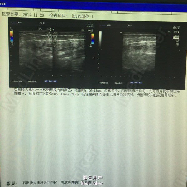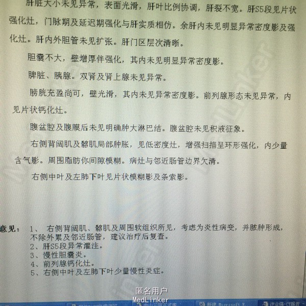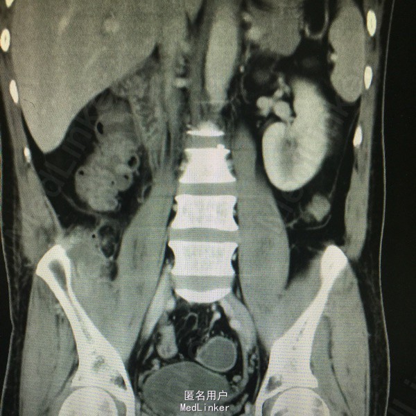 男,41岁,反复右侧腰部疼痛3。患者3月前出现右腰部疼痛,伴低热,就诊当地医院,超声提示腰大肌脓肿,给予穿刺引流,抗感染治疗。同时活检病理无特殊。现疼痛来我院。