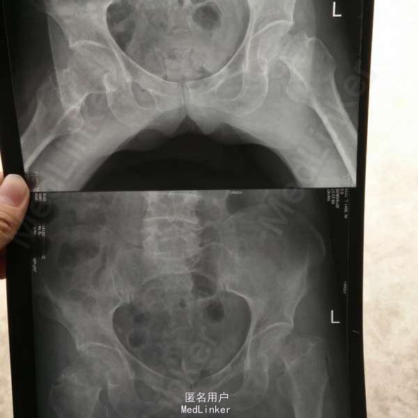 女,52岁,跌伤致双侧髋部疼痛活动受限1天。左股骨颈骨折,右粗隆间骨折。