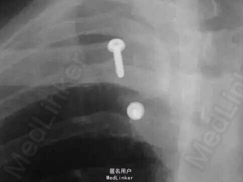 诊断:左侧胸锁关节脱位 治疗:行切开复位内固定术,应用两枚螺钉及不可吸收线八字固定