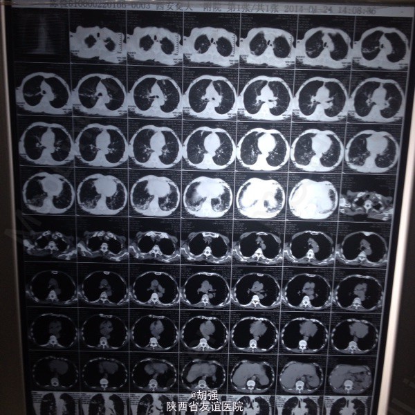 老年男性患者七十六岁。 主诉:反复咳嗽、咳痰10年,加重2月。 现病史:患者10年前受凉后出现咳嗽、咳痰,于当地医院给抗感染治疗后症状消失。此后每遇劳累或者季节交替时,反复出现咳嗽、咳痰、胸闷、气短,且逐年加重,多次住院,行胸部CT、肺功能、血气分析等相关检查,诊断为:慢性阻塞性肺疾病急性加重期,给于抗感染、平喘治疗后均能缓解(具体用药及剂量不详)。2月前受凉后,咳嗽、咳痰、气短症状加重,咳大量白色黏痰,于外院抗感染对症治疗效果不佳,遂来我院。 既往有甲状腺功能亢进病史8年,继发心房纤颤,行I131治疗;有腔隙性脑梗死病史5年。