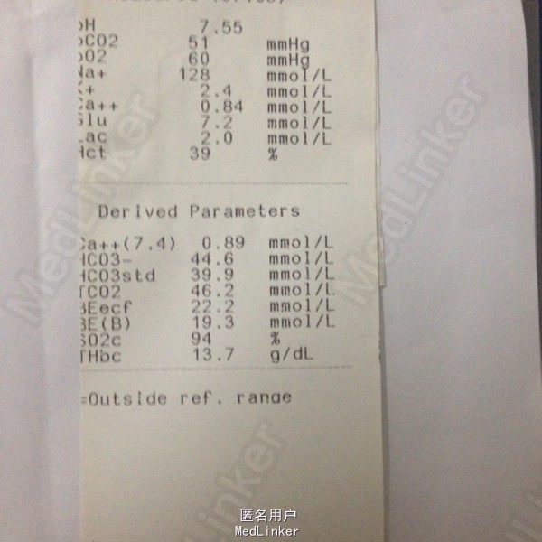 复查血常规正常,血气分析提示:低氧血症,代射性碱中毒,电解质示:钾低。考虑:代谢性碱中毒由低钾所致。