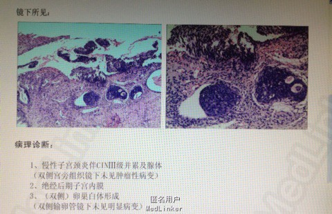 随访:病理回报1、慢性子宫颈炎伴CINIII级并累及腺体(双侧宫旁组织镜下未见,肿瘤性病变)2绝经后期子宫内膜3、(双侧)卵巢白体形成(双侧输卵管镜下未见明显病变)。 讨论:妇科肿瘤手术一般比较大,对患者影响也很大。该患者基础疾病较多,行手术前应积极纠正基本情况,改善肺通气功能,进行呼吸功能锻炼,戒烟。
