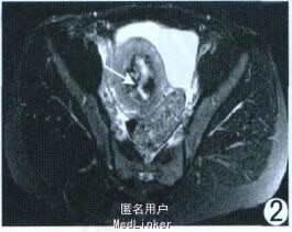 稽留流产MRI 示子宫内膜明显增厚, T1WI 为等低信号, T2WI 呈低信号, 其内可夹杂高信号, 增强后病灶中央有或无强化。而黏膜下子宫肌瘤变性, 增强扫描中后者病灶周围有强化, 可资鉴别。DOI:1003-3289(2011)09-1912-01
