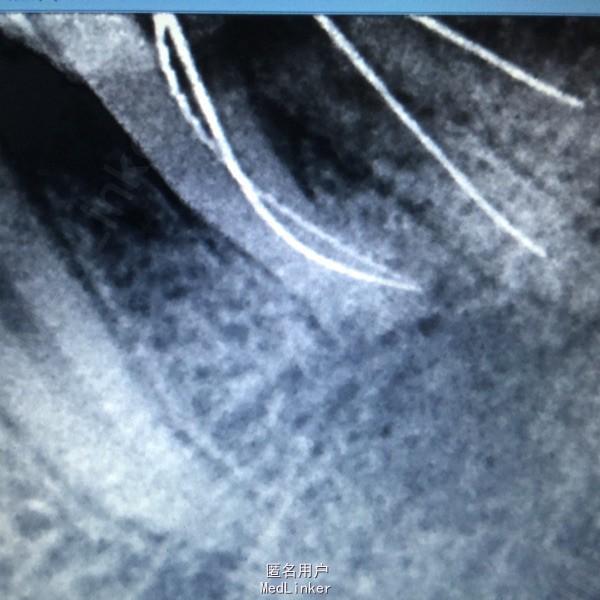 讨论:36远中根两根,当远中颊根偏颊侧明显时,一定要注意寻找远中舌根。 此时远中舌根往往弯曲细小,预备时要小心,以免器械分离的发生。