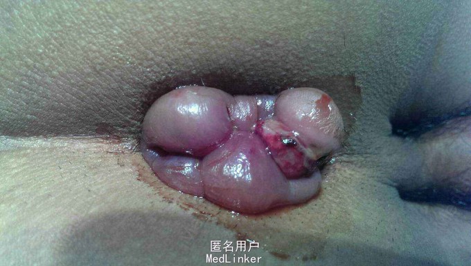 肛诊:截石位:肛门外观近环状皮赘,水肿明显,指诊疼痛明显,肛门镜因疼痛而止