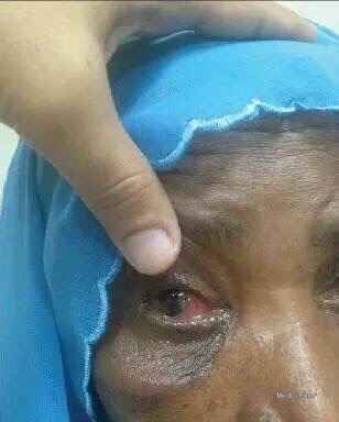 患者女,65岁,3小时前右眼被门把手打伤后剧烈疼痛。