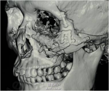 双侧颧部可见明显擦伤,左侧眶周淤斑,CT提示,昨天颧部眶骨粉碎性骨折