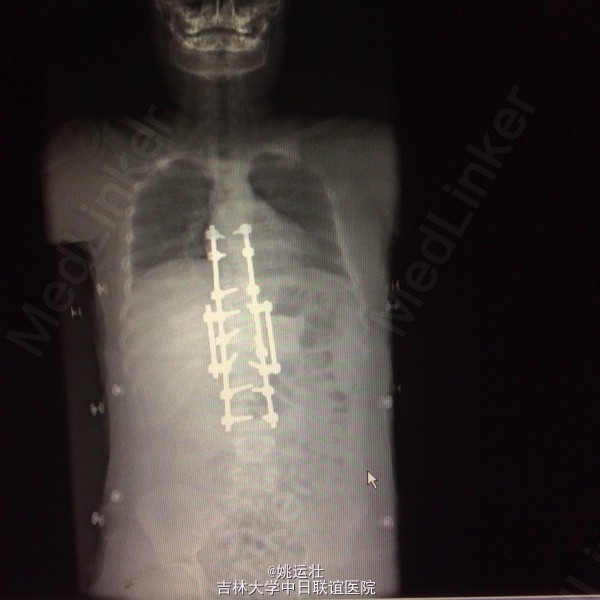 本患者后凸可能是由于机制未明的神经肌肉病变,也可能是脊柱矢状位失平衡结果,若是前者导致可能会出现屈伸脊柱的平衡肌群肌张力或肌力增强或减弱,使融合后上下端再次出现冠状面或矢状面失平衡,需再次手术治疗,密切随访患者病情。