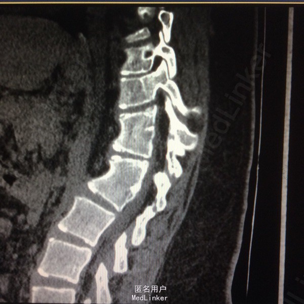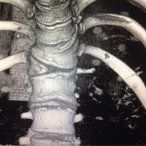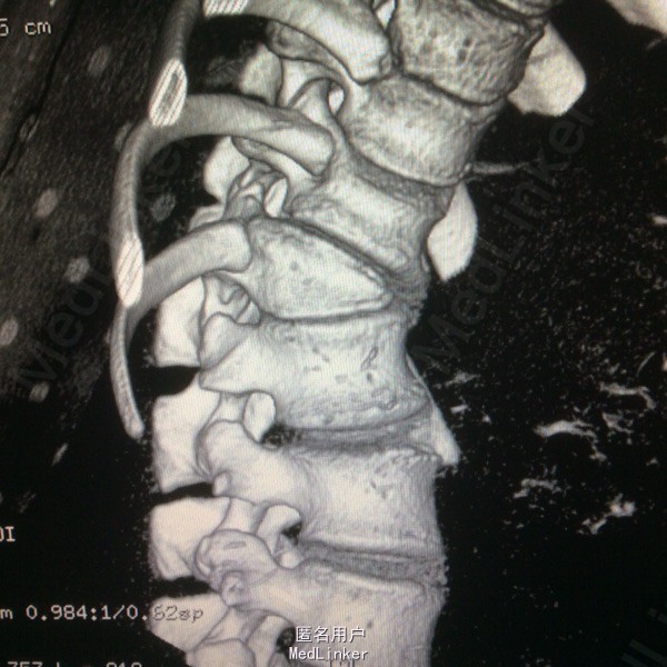 站立位腰背部疼痛5个月 五月前检查发现腰背部畸形伴疼痛,未行特殊治疗。