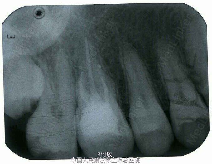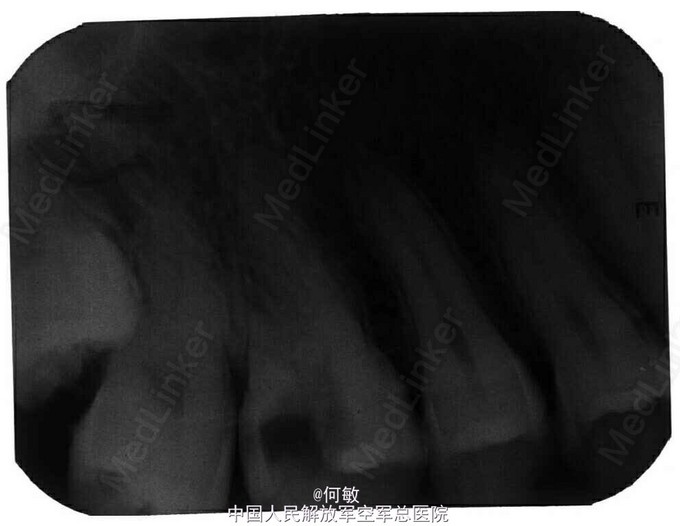主诉:右上后牙冷热刺激痛两月余。 既往史:体健,否认全身系统性疾病,否认药敏史,否认重大手术史及输血史,否认家族性遗传病史。 现病史:患者自述近两月来,右上后牙进食冷热食物刺激痛,曾有自发痛史,未经治疗,来我科就诊。