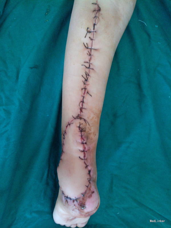 小腿后侧筋膜皮瓣修复,腓肠神经营养皮瓣