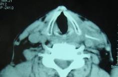 患者女,55岁,诉 “右颈部吞咽疼痛,右颈部包块 3个月 ”。曾在外院抗炎治疗多次 , 疼痛稍缓解, 但包块未消退,遂前来就诊。
