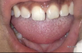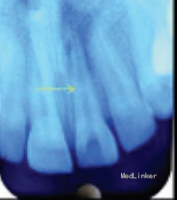 患者13岁,2月前出现上前牙的尖锐疼痛。十天前于当地医院进行21牙根管治疗,治疗过程中疼痛加重。