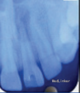 检查见21牙周围牙龈正常,无瘘道,叩(+)。 X线片发现21牙根中部有一髓石,牙冠颈部也有一髓石。