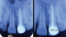 髓石多发生于成年人根管,较少见于儿童。临床中要认真分析根管影像,勿要像此病例中因医源性推挤髓石导致髓石堵住根管,加重病人疼痛,造成根管治疗失败。较大的髓石可以通过裂钻将其破裂取出,但是此种方法对牙体组织损伤较大,且较易发生穿孔。此时可以利用EDTA和小号扩锉针疏通,配合超声仪器取出。 DOI: 10.7860/JCDR/2015/13010.6047