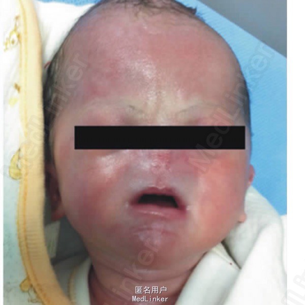 查体:体重2715g,前额较宽大,眼距正常,面部未见外鼻结构。 辅查:染色体未见异常,torch阴性