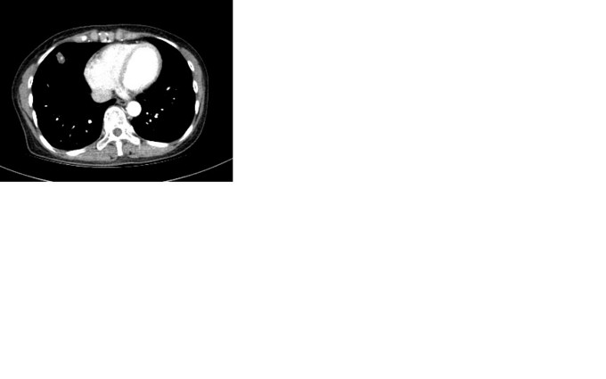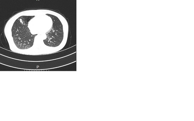 患者,女,58岁 主诉:咳嗽咳痰2月 现病史:患者2月前无明显诱因下出现咳嗽咳痰,呈阵发性,咳嗽不剧,能忍,稍有咳痰,为黄色粘痰,无发热,无胸闷气促,无胸痛心悸,无咯血痰血,无盗汗,患者病初平湖市中医院就诊,查胸部CT示“右肺中叶炎症,右肺上叶多发肺大泡”,予抗感染治疗9天(具体不详),后复查胸部CT示“右肺中叶高密度灶,建议增强扫描;右肺上叶肺大泡”,患者遂至本院门诊就诊,查胸部增强CT示“右肺中叶外侧段结节,恶性不除外,建议随访复查”,为求进一步诊治,门诊拟“肺占位性病变”收住入院。 患者病来,神志清,精神可,胃纳佳,睡眠安,大小便无殊,近期体重未见明显增减。 既往史: 既往健康状况一般。否认“高血压病、糖尿病”病史,否认有“甲状腺功能亢进症”等其它内分泌疾病史,否认有“心脑血管、肝、肾”等重要脏器疾病史,否认有“肝炎、结核、伤寒”等传染性疾病史,否认有重大外伤史,否认有重大手术史,否认有输血史,否认有中毒史,否认有药物食物过敏史,预防史不详。
