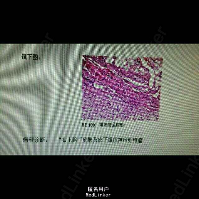 积极完善相关检查后,局麻下行右侧肿物切除,手术顺利。术后常规抗炎对症治疗。术后病理提示神经纤维瘤。