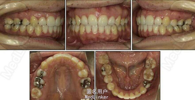 24岁女性,主诉前牙拥挤,左侧第二磨牙严重向舌侧倾斜,左侧咀嚼困难因为第二磨牙锁合,要求解决。