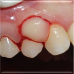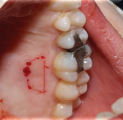 计划切除增生牙龈。由于增生范围较大,拟利用腭侧牙龈进行软组织修复。