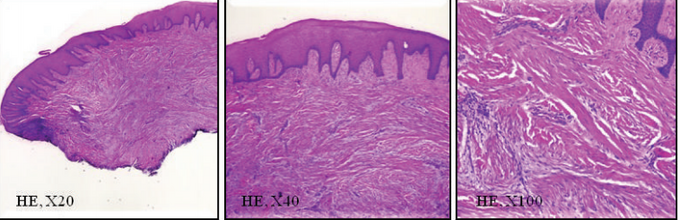 患者1月、6月、12月后复诊,恢复良好,无复发。 牙龈纤维瘤在临床属于较常见疾病,多采用手术切除方式,注意要与其他类型牙龈增生相鉴别。手术切除纤维瘤后,若缺损较大,尤其实在美学区,影响美观,可以利用周围皮瓣进行修复。术后菌斑控制也很重要。