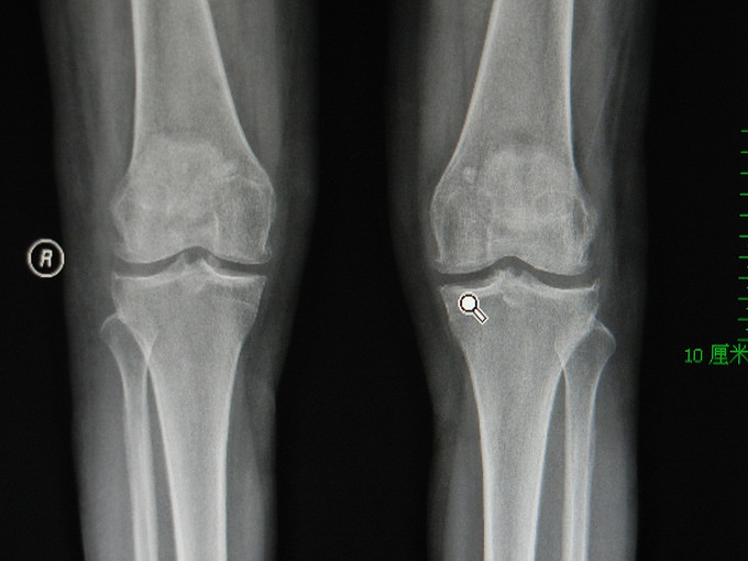 患者女,53岁。因“双膝疼痛3周”入院。现病史:患者于3周前无明显诱因出现双膝关节疼痛不适,以左膝为主,上下楼及下蹲时疼痛明显加重,于当地医院就诊行拍片及“血沉”,“RF”及“ASO”检查后专至我院,门诊检查双膝MRI示“双膝OA:双膝游离体“诊断收住院。患病以来患者一般情况良好。 既往:乳腺增生手术史10余年。