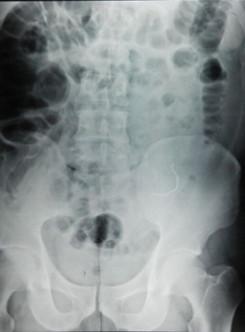 查体:腹部平软,左下腹轻压痛,未触及包块,肛门括约肌松弛,直肠内未触及异物,指套无染血。 辅查:腹部立位透视见左下腹部金属异物。腹部CT见下图。