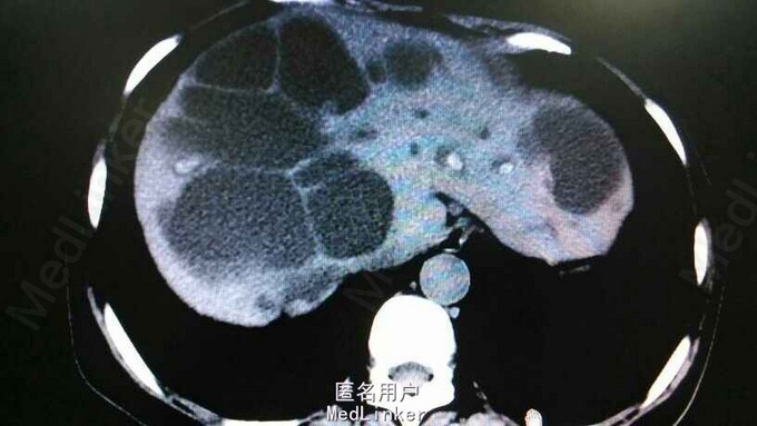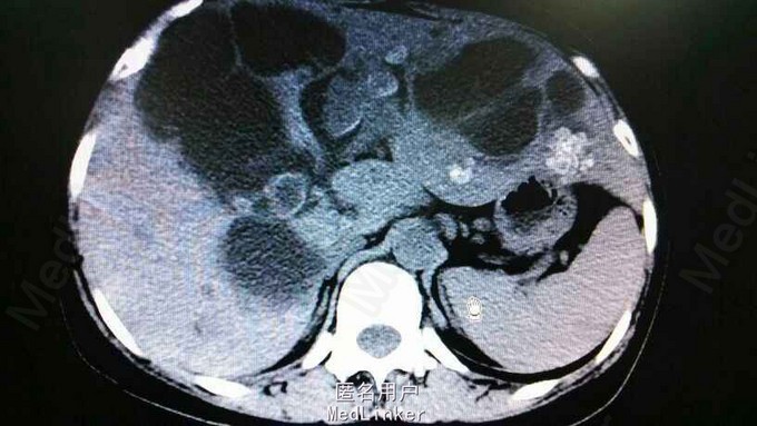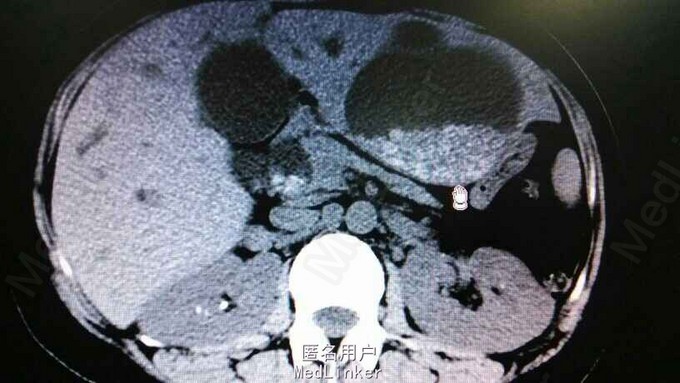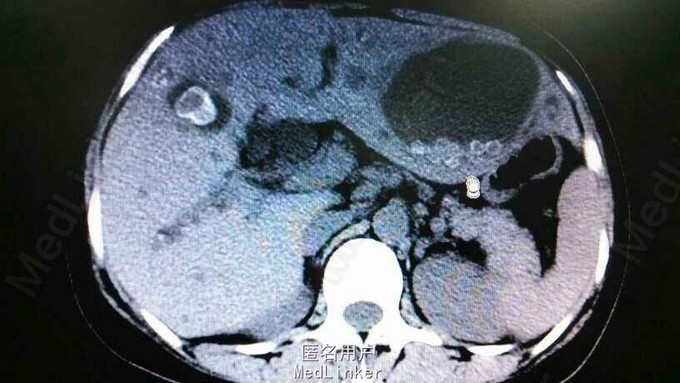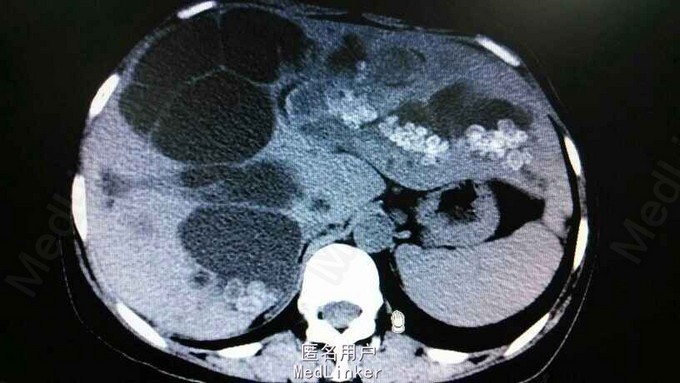 查体:右上腹轻压痛,无反跳痛,余无特殊。辅助检查,肝功,血象正常。腹部CT示肝内多发结石伴胆管囊状扩张。胆总管结石。见图